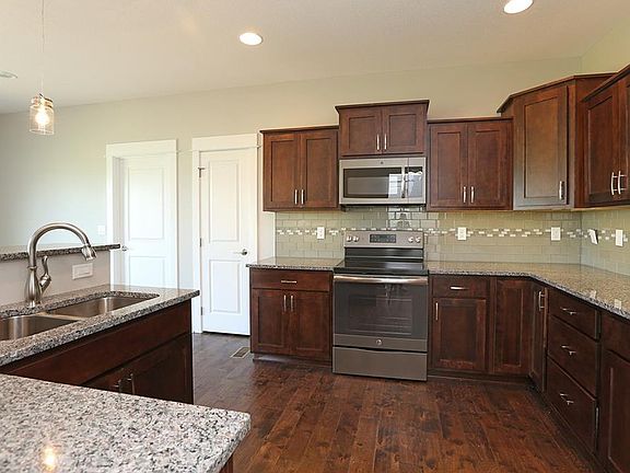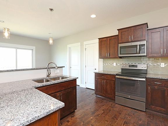 The outside is not the only gorgeous part of this home, wait till you see the inside! Walk on in to this Cornerstone Homes Andrea II design! Get greeted by a nice size office/den area with glass doors along with half bath across the hall. Solid surface flooring and carpet through out main area, kitchen with an abundance of cabinets, and granite through out. Master suite has lit up tray ceilings, double vanity and partially tiled walk in shower. Fireplace with stone surround that just makes the living room feel so much more cozy. Downstairs is open and ready for some finishes! 2 egress windows and stubbed for bathroom. Want it finished? Lets have that talk and determine prices to complete your dream home! Come see what sets us apart from the rest! Contract and lease options available.