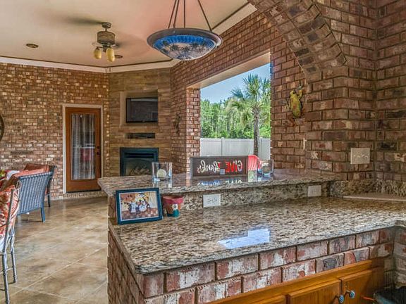 This gorgeous, all brick home is an entertainer's dream!! With 4 bedrooms, 2 full baths, located in the popular Hawks Landing neighborhood with an AMAZING outdoor kitchen. Outdoor gas fireplace, place for a TV (doesn't convey), outdoor kitchen with granite countertops, new grill being installed, outdoor sink, and fridge. You can enter from the breakfast nook sliders, living room, or even your master sitting area. With stained concrete flooring inside home as well as the back patio. Brand new HVAC system. Custom kitchen with plenty of cabinetry (don't forget the pullout spice racks on the side of the fridge and stove), gas stove, and granite. Master suite has a sitting room and an amazing en suite with separate tiled shower, jacuzzi tub, and 2 vanities. All sizes/info/measurements approx.