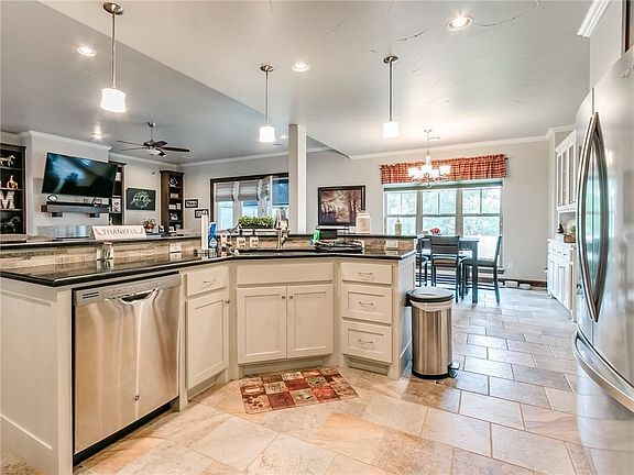 New listing alert! This spacious, well cared for property is located in the popular Grove school district near the northeast end town. Home has easy highway access, located near the Shawnee Country Club, medical, shopping and dining facilities. Some of the interior features include an open concept floor plan, mother in law set up, granite and quartz countertops and window sills throughout, gas fireplace, custom built-ins, reverse osmosis water filtration and water softner systems, plantation blinds in the home office, remote controlled HunterDouglas blinds in master bedroom, bathroom and sunroom. Exterior features include professional landscaping, a sprinkler system, vinyl privacy fencing, an over-sized covered front porch, enclosed sunroom, back patio area and so much more. Ideal location for daily strolls and get togethers. Rates have recently dropped! Take a look today.
