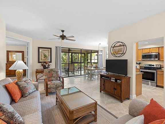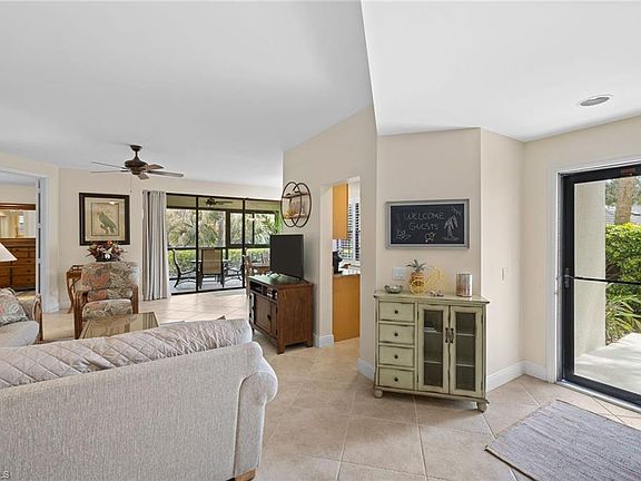 Three Month Minimum Rental. Enjoy picturesque landscaped views from this first floor 3 bedroom, 2 bath end unit coach home with an attached 2 car garage. Upgrades and features include stainless-steel kitchen appliances, large tile on-the diagonal in the living areas, kitchen and lanai, granite countertops throughout, newer raised bathroom cabinets, flat screen TV's in living room and bedrooms, ample guest parking and pocket sliders that completely open to the glassed-in lanai making a perfect space for relaxing or entertaining. The Oakwood community features tennis courts and pool/spa area all within walking distance to the condo. Bonita Bay is an award winning gated community among Bonita Springs rentals, where one-half of the 2,400-acre community is devoted to golf courses, parks, preserves, natural areas, and other open spaces. Enjoy the 12 miles of walking/bike paths, partake in the communities many social activities, or take the shuttle to Bonita Bay's private beach park on Bonita Beach for a day of sun and surf. The Bonita Bay Beach Club provides lounge chairs, restroom/showers, charcoal grills and gazebo with picnic tables and can be accessed by tram provided by Bonita Bay. Additional community amenities include a Marina with boat docks available for rent, casual waterfront dining at Backwater Jack's and three waterfront recreational parks that feature canoe & kayak launches, picnic areas, lighted tennis courts, fishing piers, children's playground, pavilions, butterfly park & boardwalk to Estero Bay.