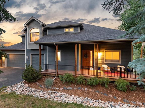 This Evergreen home presents the perfect balance of mountain living, nestled in the foothills and just 45-minutes from Denver. Entering the home, you are greeted with a sizable open space living, dining and kitchen area, high vaulted ceilings and an expansive view of the mountains. The main space features a cozy gas fireplace and newly designed low-maintenance composite deck, ideal for both entertaining and relaxing. The kitchen offers a large island and extensive cabinet storage and counterspace. Add to this the consistency of an induction cooktop which is a chef's dream, and a place to store favorite bottles of wine at the ideal temp in a built-in wine refrigerator. Heading upstairs the black satin stair rail complements the home’s modern mountain aesthetic where the upper level of this home continues to exceed expectations. The primary suite offers an ample walk-in closet, a newly updated ensuite 5-piece bath which features a stunning standalone tub with views to the foothills, and a custom glass-enclosed shower. On this level, you’ll also find an additional two large bedrooms, each with walk-in closets, and a fully updated bathroom. The walk out basement is just as functional as the rest of the home, and includes a den area to relax and watch tv, multiple areas for storage, and a flexible space which makes the perfect game room. Walk outside the glass door and you’ll find the perfect spot to spend the afternoon reading a book. Find peace of mind being connected to city managed water taps and sewer. This home sits on over 12,000 square feet which provides just enough to enjoy gardening and greenery, yet not overwhelm. Finally, the oversized 3 car garage provides ample space for all your mountain gear essentials and a safe place to keep your vehicles.
