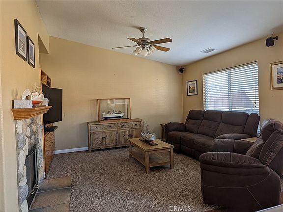 Newer Drought resistant front yard automatic timer and sprinklers. Garage has Built in storage shelves and cabinets, Newer water heater. Air compressor stays. Oversized newer air condenser unit. Back yard concrete with side yard, area for grass and side back yard on both sides of home. Oversized storage shed stays with property. Beautiful Kitchen with lots of cupboard space, Newer appliances & Refrigerator. Newer carpet in family room and living room area, fire place in family room. Newer windows and doors. Beautiful flooring throughout. Large Master bath area, Large walk in closet