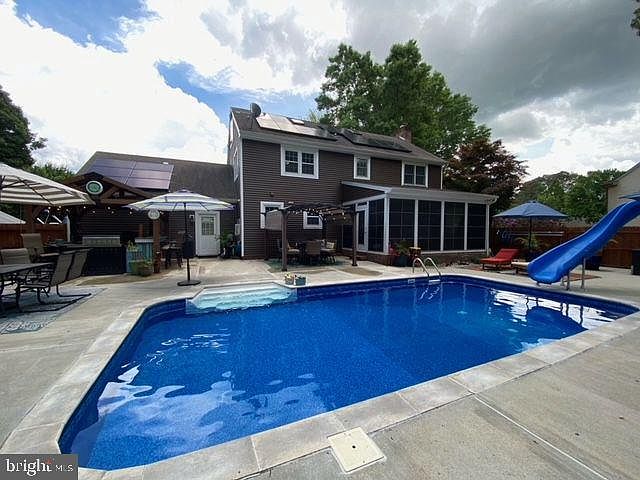 Enjoy the salt water pool, out door kitchen and patio area for entertaining this summer. Don't miss out on this fabulous home with three bedroom or fourth bedroom on the third floor. 3 season porch with gas fireplace (thematic control) Backyard Oasis with a salt water pool and slide, Custom fence surrounding pool, 2 Gazebos - 1 with outdoor bar and kitchen with granite counter tops, electric, and running water in the outdoor kitchen. There is a pool Shed to store all your pool toys and more. There is 3 outdoor carpets that convey with additional storage bins for cushions. For the gardener, there is a raised vegetable garden all ready to be utilized. Exterior: Architectural shingles 10 yrs old Solar panels (owned) - provides an electric bill around $10/month most of the year New septic in 2017 1st & 2nd Floor HVAC units replaced in 2017 3rd has electric baseboard heat and a split unit for AC New duct work under house replaced in 2020 Asphalt driveway Shed for lawn equipment Solar path lights in front of house Motion sensor spotlights in Backyard and driveway Insulated Garage door and garage door opener (replaced in 2019) Garage interior - insulated and lined with 3/4" plywood and has utility sink Rear garage door replaced in 2019 Front door replaced in 2020 Siding replaced in 2022 All windows are updated and tilt in for cleaning