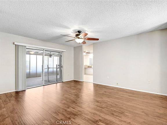 Bright and cheery 2BD 2BA single story home located in an active 55+ community. Main entrance opens into the main living area. The kitchen is located to the right, with breakfast bar and separate eating area. The Master Bedroom and bath are located on the opposite side, left of the main entrance. The master has a large mirrored closet and sliding glass door to the back patio. The guest bedroom with walk-in closet and second bath are found to the left of the main entrance as well. The covered patio in the backyard runs the length of the home, making it enjoyable to spend time outdoors and entertain. The yard has citrus tree's, currently low maintenance landscaping front and back, with the backyard large enough to create your own private retreat. The community association has a clubhouse, swimming pools, amphitheater, billiards room, card room, bocce/lawn bowling, wood shop, craft room among it's many amenities.