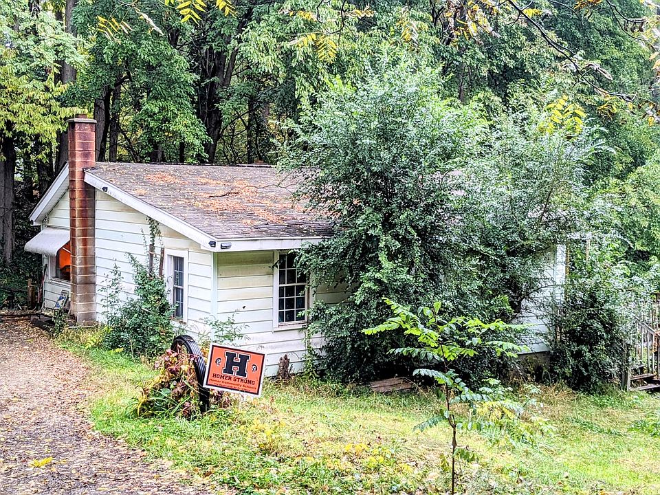Large pie shape parcel consist of 3 wooded lots. Secluded three bedroom home has the up north appeal with big city amenities close by. This home is sold ''as is where is'' It is in need repairs.