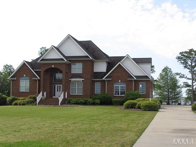Beautiful brick home on the Perquimans River. Fabulous Pella windows(low E glass) that wrap the house and show the beautiful river view. Handicap accessible. Open floor plan and cathedral ceilings. Hardwood floors, fireplace, granite counter tops, gourmet kitchen, central vac and double garage. 1st floor master suite with fireplace, jetted tub and steam shower, porcelain tiles, walk in closets and French doors that open to a waterfront terrace. Beautifully landscaped 2nd floor great room, Bose stereo system throughout. 200' pier and boatlift with electricity and water.