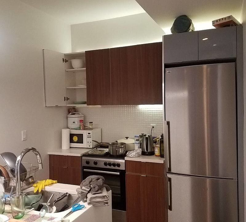Sunny apartment with loads of space and closet. Beautiful finishing, hardwood floors, stainless steel appliances ( Dishwasher) Laundry & Bike Room in building. Unit features a large balcony with breathtaking city views.
