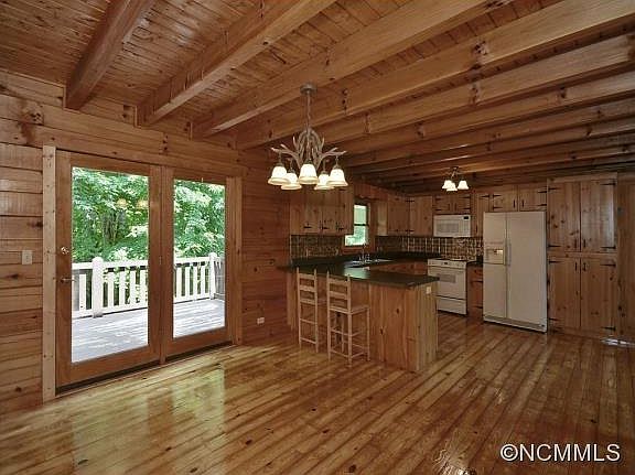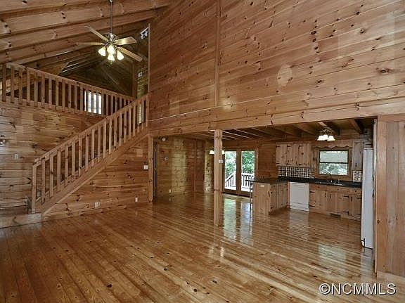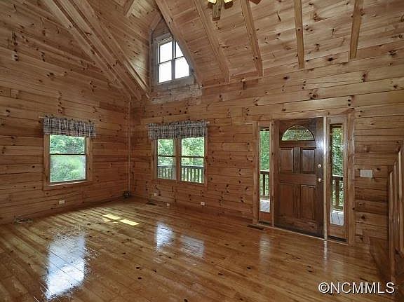 Log home on very private 5.05 acre setting. Master bedroom on main level. Whirlpool tub & shower for master bath. Open floor plan. Full unfinished basement with garage and workshop. Large covered 40' front porch. Nice rear deck. Peaceful, country setting. Great garden space. The garage only has single car garage door. All wheel drive or 4 wheel drive suggested