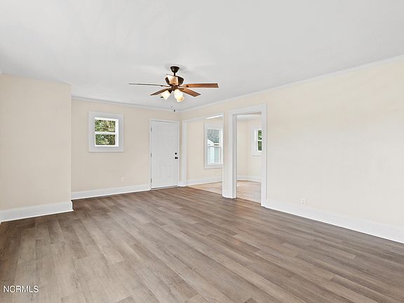 Welcome to your homesteading era with this thoughtfully renovated cottage farmhouse in Hubert! Coziness, charm and character create an idyllic space to call home. Possibilities await on .75 acres of private, useable land. Enjoy cultivating a garden, raising chickens, or simply letting the pups out to play among mature trees and peaceful views. This home features two large bedrooms, a large living space, separate dining nook and a large kitchen with a full suite of new appliances. Rest assured with a new roof and new HVAC system. You will love the ceiling fans throughout and new flooring as well. Conveniently located near Camp Lejeune, local beaches and Swansboro schools! You won't want to miss the chance to own this gem!