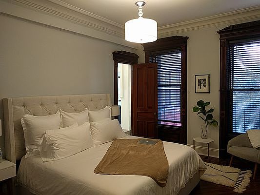 2BR, 2BA Modern Lux with Museum Quality Detail in Park Slope North, Off of the Park - NO FEE NO Fee - Outstanding Luxury Brownstone Apt in Second Unit of a 3 Unit Brownstone merges historic charm with modern amenities. 10 foot ceilings, new stainless appliances with Dishwasher, Washer/Dryer in unit, central A/C controlled by renter. Good storage in kitchen and hallway. Beautiful wood floors and wedding cake molding. Stunning, tranquil Sunroom overlooks gardens - perfect for home office. Spacious master bedroom large enough for King Size bed, en suite bathroom for privacy with double sinks. Large closet. Situated in quiet back of apartment. Second bedroom with charming detail 2 full luxury bathrooms. Steps from Prospect Park oasis and Farmers market. One pet upon approval. Non Smoking Building. Fun Fact - Brownstone is Archived in Brooklyn Museum as "The Ortner Brownstone". September 1 occupancy Showings: Fri., July 21 @ 5-7 pm Sat., July 22 @ 11-1 pm
