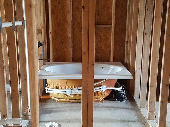 Construction in progress. Home has windows, siding, roof, and is plumbed. Some bathroom fixtures are also included (2 jacuzzi tubs). 16x80 1996 2 bdrm 2 bath mobile home included with property. Septic that mobile home is using is approved for construction upon completion. Seller has been living in mobile home while building house.