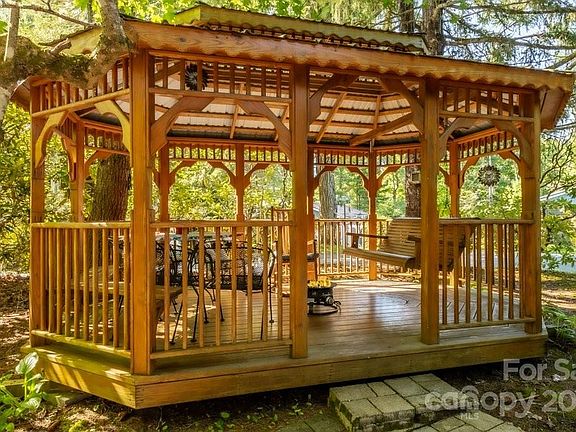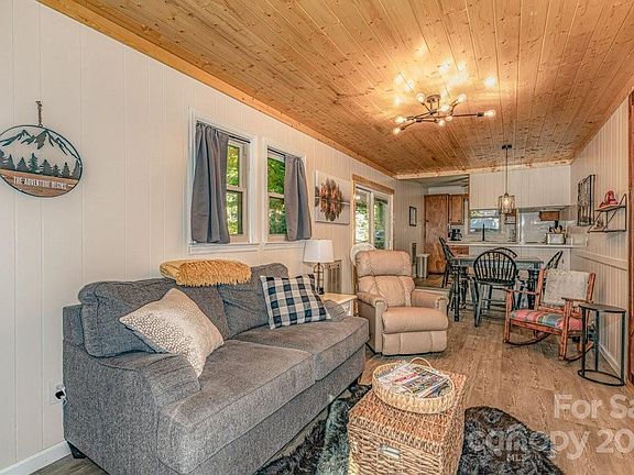 SELLER WILL PAY $5000 INITIATION FEE FOR BUYER. Beautifully renovated bungalow in stunning Linville Land Harbor. Step into this cozy home & feel your worries drift away. Recent upgrades LVP flooring & paint in every room, modern sliding doors featuring built-in blinds. tongue & groove ceilings, & a custom wooden wall art panel in den, harmonize effortlessly with new light fixtures, creating ambiance of unparalleled comfort. The newly encapsulated crawl space is paired with a new metal roof on the rear section, front metal roof installed in 2008, & new gutters featuring a leaf guard system add to their functionality. This home is an active vacation rental, and comes fully furnished, offering the chance to embrace it as your personal sanctuary or potentially garner supplementary earnings. The conveniently attached storage room on the back of home offers access to the attic and crawlspace. Enjoy the outdoors in your spacious front yard or large oval gazebo featuring a classic porch swing.
