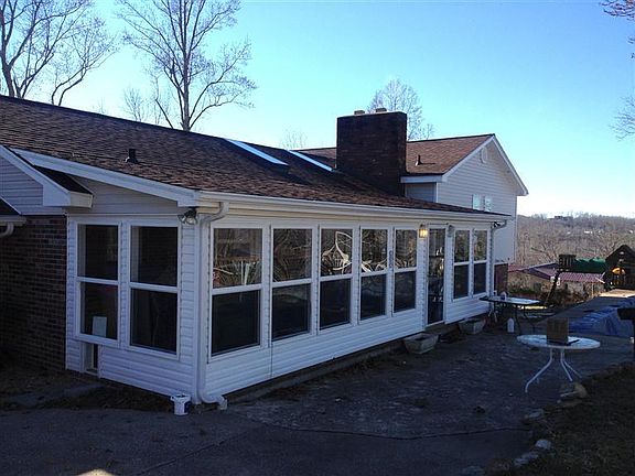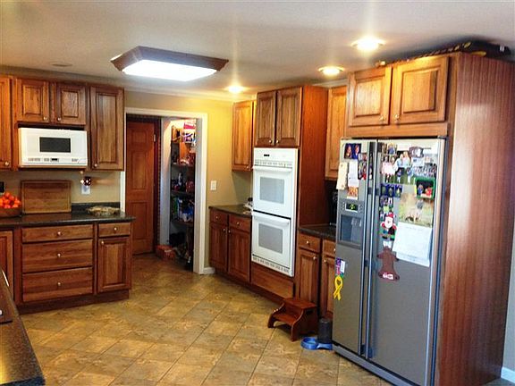 Sitting high atop the town in a well-established neighborhood, this split level family home features an attached garage, in-ground pool, and new deck. Numerous updates include a newly remodeled kitchen that any cook would love with tile flooring and hickory cabinets, new roof, vinyl, and windows, and hardwood flooring which covers the living room, hallway, and three bedrooms. This home boasts two fireplacea gas fireplace in the kitchen/dining area and wood-burning fireplace in the partially finished basement. And did I mention that the basement has a man cave? Well, it does! Completing the home is a beautiful sunroom with surrounding windows that overlook the pool and deck.