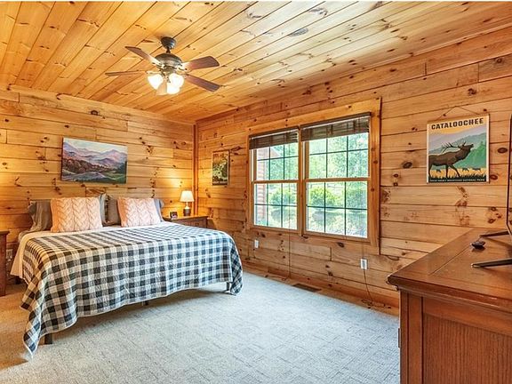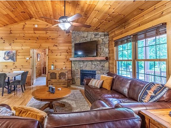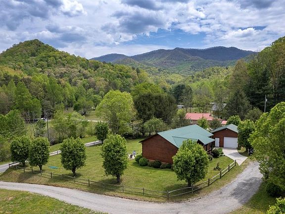 Well maintained log home. Floor plan is inviting as you come inside see the beauty of the vaulted ceiling that hosts a stone fireplace that extends from floor to ceiling. Split bedroom plan, owner's suite with walk-in closets and double sinks. Detached garage with storage. Sit on the porch swing and listen to the sound of the creek just across the road. This house has 2 lots with plenty of flat space for all your entertainment needs! Equipped with a whole home generator. Short term rentals are allowed, and this home has a great rental history! A short drive to Harrahs Casino, Great Smoky Mountains National Park, and all the reasons to visit WNC! This home is being sold fully furnished!