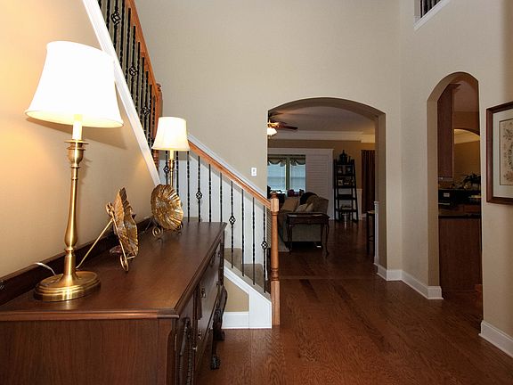 Beautiful energy-efficient and low maintenance home is only 4 years young and includes loads of upgrades. Features hardwood floors, heavy moldings, and high smooth ceilings. Great Room with custom window seating/storage benches and stacked-stone fireplace flows into formal dining room. Spacious kitchen overlooking living areas with a breakfast bar for 6, granite counters, island, built-ins, pantry, and gas/convection range. There is also a living/family room cleverly separated by custom sliding plantation shutter doors. Soaring foyer with arches and coffered ceiling leads to upstairs loft area. Enormous master suite with a sitting room, walk-in, double vanity, water closet, garden tub, and separate shower. Upgrades also include 30 year architectural shingles and full house gutters. Corner lot with no rear or left side neighbors has great curb appeal and is next door to the pool!