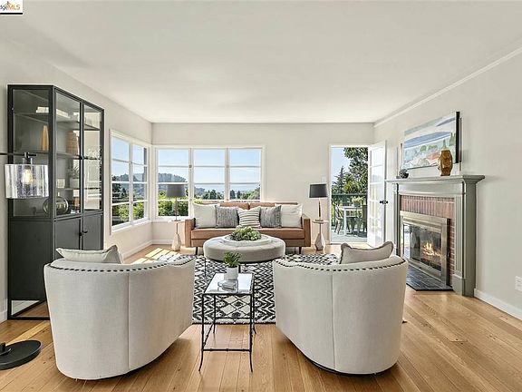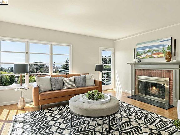 Sophisticated sunny Mid-century home with expansive Bay and SF views. Located on a peaceful cul-de-sac close to Colusa Circle shops, EC Plaza BART and Bus to UC. Large Family/Media room, office/plus room and workshop. Beautiful private landscaped gardens with fruit trees and veggie beds.