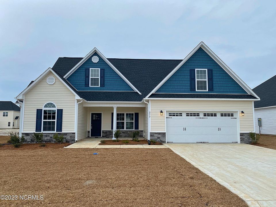 Welcome to the highly desired & popular community of Onslow Bay. Brand new construction built by Onslow County's most trusted & preferred builder, featured in Builder 100/ Top 200 Builders in the country. Onslow Bay is a hot spot, 3 miles to MCB Camp Lejeune's Piney Green gate, 14 miles to New River Air Station & minutes to area schools, shopping & dining. This beautiful neighborhood is sure to impress, complete with a clubhouse area & community pool. Welcome to the Hickory. 3 bedrooms with bonus room/3 bathroom. A cozy covered front porch is charming and inviting. Great curb appeal! The foyer opens to a beautiful formal dining room and leads to a spacious 6 x7 great room with fireplace. The eat-in kitchen features stainless smooth top range, a dishwasher and microwave. Choice quality staggered flat panel cabinets. Quaint breakfast room opens to the alluring covered back porch. Main level laundry room. The upstairs bonus room is one of a kind! A 13 x 19 room with a full bathroom and walk-in closet. The bonus room space is full of possibilities to fit your lifestyle. It can be used as an actual bedroom, a large game room or even an additional living room space. It's unique and impressive! Call today to view and personalize this lovely home sweet home. $10,000 USE AS YOU CHOOSE!! NOTE: Floor plan renderings are similar and solely representational. Measurements, elevations, and specs may vary in final construction. HOUSE COMPLETE!