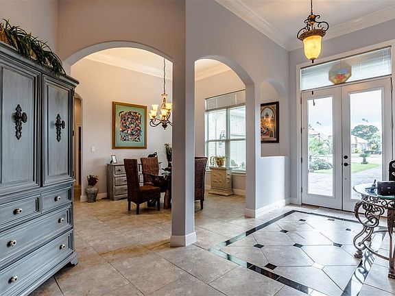 Very well maintained four-bedroom, three bath home on quiet cul-de-sac in highly desirable Cypress Bend Village of Craft Farms. This beautiful home boasts a bright, open floor plan with high ceilings, a fabulous kitchen, separate dining room, TWO Master Suites and a screened lanai with a low maintenance spa pool overlooking the fifth hole of Cypress Bend Course. This home was completed in 2014 and built to gold fortified standards which will save a substantial amount on your insurance and utilities! Several additional steps have been taken to make this home extremely energy efficient including a Rinnai Tankless Water Heater, extra insulation and a variable speed HVAC system with built in dehumidifier, just to name a few!