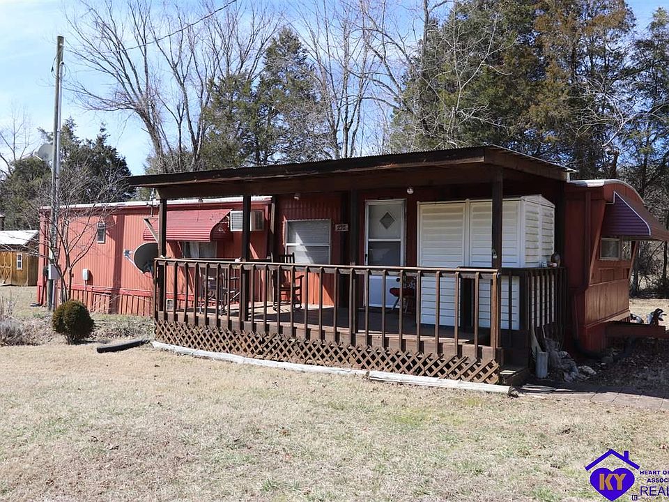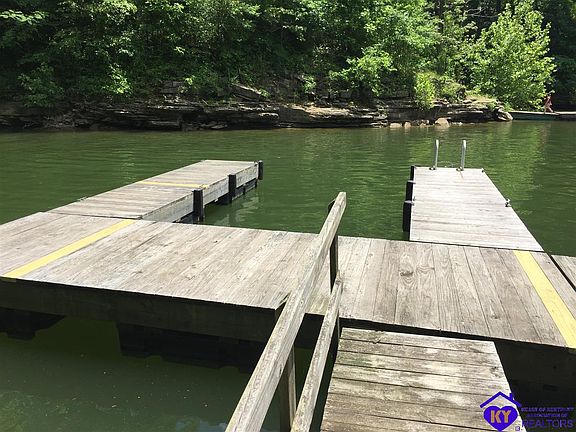Are you tired of loading up the car every time you want to go to the lake? This Nolin Lake home is ready for you! This home is located in Dog Creek area at Nolin Lake and comes with your own boat dock. It's an end dock, with two fingers located in a deep cove-perfect for swimming or relaxing. Enjoy this 2 bed, 1 bath home with open floor plan. There's lots of outdoor spaces with a covered front porch, screened in rear porch and .44 flat acre lot. There's a tree row in back with a pond on the adjoining lot. Room for hammocks, fire pit and horseshoes. There is a detached shed for lake toys and extra storage. No need to pack the car up when you're ready to head home, just shut the door and recall all the memories! Enjoy the lake life, you deserve it! Note: The community dock is moved every year to the island so as not to have it damaged by spring rains. The subdivision is Gwendale Estates. Seller has not used propane heat for several years, they use electric plug in heaters.