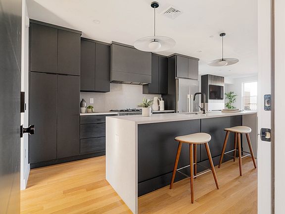 Introducing the last remaining home in this new construction boutique building with one of a kind finishes that exemplifies refined City living. This top floor 3 bedroom/ 3.5 bathroom condo features incredible natural light, private outdoor space, water and park views. Situated on Eagle Hill, minutes to the Wood Island T, surrounded by parks, and some of East Boston’s top food destinations. Enter and you are greeted with a custom kitchen with Fisher Paykel appliances and sleek finishes. This main level allows you to see the water from your kitchen island and living room which is flanked by the gas fireplace and your private outdoor space. Off the kitchen, you also have a half bath and a bedroom with a full bath. On the floor above, you have two large bedroom suites, one of which looks over the park, and the other that looks over the water. Side by side in-unit laundry is also found on the same floor. One garage space included.