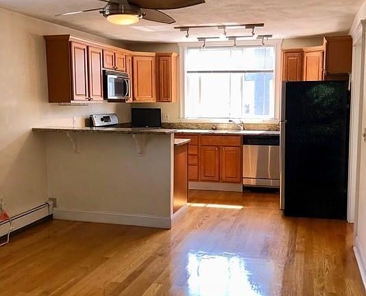 Located in the heart of South Boston's West side, this efficiently laid out 2 bedroom leaves no space wasted. The open concept kitchen and living room give it an open and airy feel with large picture windows to let in lots of day light. Hardwood floors throughout. The updated kitchen features granite countertops, breakfast bar, gas range, and stainless steel appliances. Back stairs make a great nook for outdoor space. Complete with in-unit laundry. Bedrooms can fit a full or queen size bed w/ large closets. Just three blocks away from all of West Broadway's offerings and an easy commute to the MBTA Red Line Broadway Station. Enjoy all that "Southie" has to offer here including the restaurants, bars, shopping options, and Carson Beach.