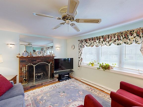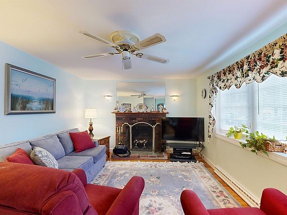 This lovely, sun-drenched home boasts over 1,700 sq ft of living space. The formal living room features a large picture window and a charming brick fireplace. The dining room is perfect for hosting holiday gatherings. The spacious eat-in kitchen offers white cabinetry, recessed lighting, and convenient exterior access, making grocery hauls a breeze. Enjoy the fall season watching the big game in the family room, which includes a gas stove, floor-to-ceiling windows to admire the changing leaves, and direct access to the garage. The home has four generously sized bedrooms, hardwood flooring throughout, central air, and a full basement. You'll love spending time in the fenced, private yard, complete with a patio area and space for a garden. Conveniently located near Rt 28, Brockton Country Club, shopping, and more. Call today to schedule your showing!