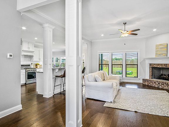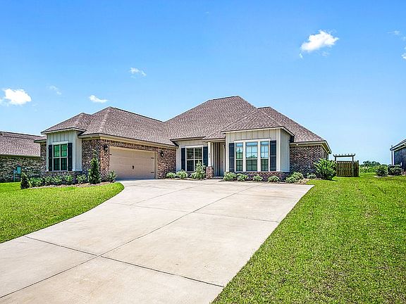The Florence Plan is a well-appointed Craftsman style home less than a year old. This one-story 4 bedroom 3 bath split bedroom plan offers an open kitchen with a large keeping room that can be used for a bonus, play, or entertaining area! This beautiful kitchen boasts high-end Kitchen-Aid stainless steel appliances with a five-burner gas range, custom-built painted cabinetry, granite countertops, and a subway tile backsplash. The custom trim package includes mud bench upon entry from garage, wainscotting in the dining room, tray ceiling in the master bedroom and crown molding showcase the attention to detail. Hardwood floors in foyer, dining room, living room, master bedroom, keeping room, breakfast room, pantry and hall to garage! Huge master suite with sitting area and tray ceiling. Master Bath is appointed with custom cabinets, double vanity, granite countertops, two spacious closets, a large garden style tub, and a separate tiled shower. The yard is fully sodded and includes a five-zone irrigation system. This home is Built Fortified Gold. Community amenities include a swimming pool, basketball court, tennis court, playground, and gazebo. Located minutes from Downtown Fairhope and Mobile Bay. This home is Move in Ready with blinds and a fully fenced back yard, so schedule your showing today!