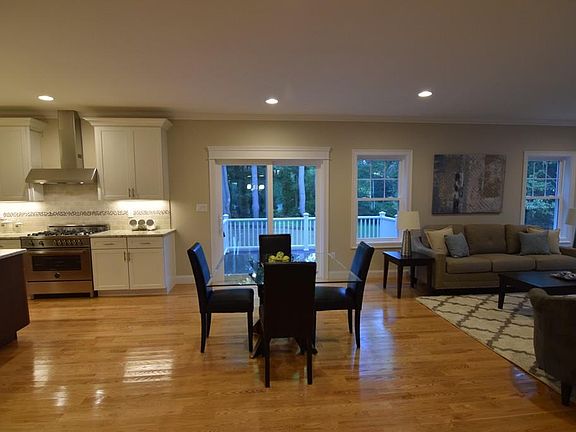 Just completed! New 4 - 5 bedrooms, 5 full baths, 4000 + square foot energy conscious colonial on a large, level 30,000 sq. ft. lot. Featuring a gourmet eat in kitchen, with stainless appliances and large island, open to fire-placed family room, a total of 45 ft x 15 ft open space for entertainment and family gathering. A first floor study with french doors and a first floor living or possible bedroom suite with 3/4 bath. Well appointed dining room, applied moldings. Master suite with cathedral ceiling, a luxurious bath and walk-in closet. The finished lower level offers a day-light bonus room, playroom and full bath. Stone walls, Composite/Azek decking. Centrally located and walk to shopping. Minutes to major routes.
