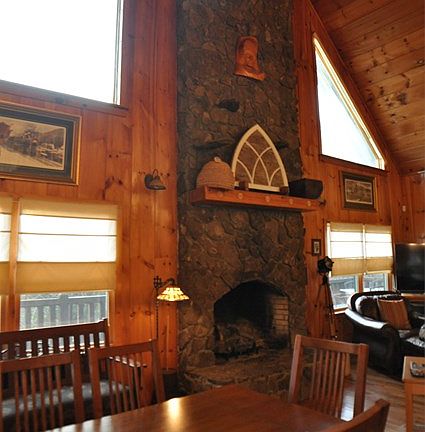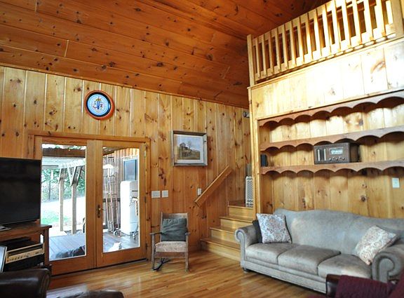 Cabin style home has park like setting with great front porch to enjoy the sunsets from this 2 bedroom, 2.5 baths with an open floor plan allows for easy entertaining in living, dining & kitchen area, large rock fireplace. Master bedroom suite is on the main level, master bath has jetted tub, dual vanities & separate shower. Upstairs the family room has a kitchenette there is a full bath & bedroom #2. Full unfinished basement. Attached double car garage,detached double car garage with workshop and a detached oversize carport. No Restrictions. Offering a 1 year home warranty (AHS $625 value).