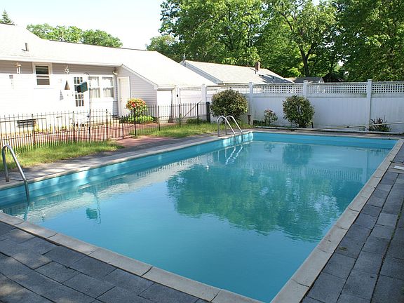 Renovated & JUST LIKE NEW! You'll love this 6 room, 3 bedroom L-Ranch w/ 2 car garage & in-ground pool. Spacious living rm w/ hardwood floor & a beautiful chandelier. New kitchen w/appliances, granite counters & a generous size dining area w/bay window & a view of the gorgeous pool! New bath w/marble floor & granite counter. The 3 bedrooms have hardwood floors. The heated porch has wood walls & ceiling. Basement family room is a generous 18 by 11 ft. Owner says these renovations have been completed in the past 3 years: new walls, windows, doors, plumbing, electrical, heating system, central-air, full insulation, new kitchen, bath & family room & even a back-up generator system! Nicely landscaped yard w/large patio, a beautiful fenced In-Ground Pool & pool house. MUST SEE!!!