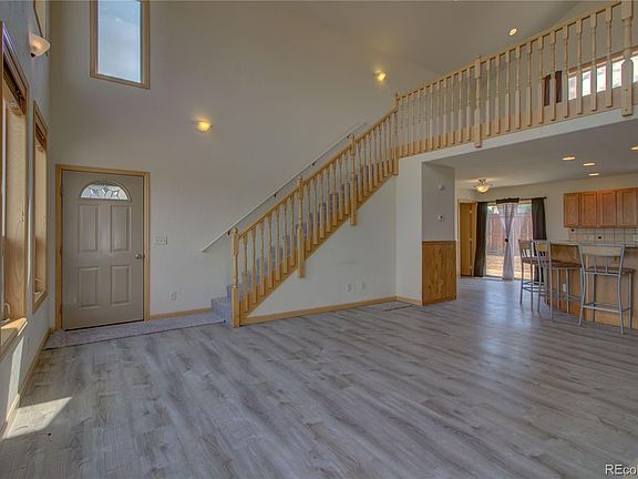 As you arrive from a quiet street, the vaulted ceiling with large glass windows and rock face to the top is visible and your first impression. Upon entering into the living room you notice the open floor plan of the living room, dining area, center island and kitchen. The master bedroom suite with its own full bath is conveniently located on the main level along with a half bath off the kitchen. Upstairs opens into the large family room. There are two bedrooms and full bath adjoining the family room and one room has an attached ladder to a small upstairs play or sleeping area. The front yard is landscaped and has sprinklers. The rear yard has a concrete area the full length of the house. The rest of the yard is not planted but has sprinklers and ready for your imagination.