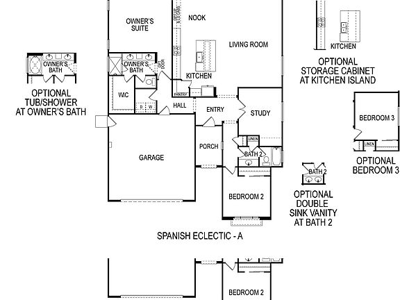Lucia is a charming single-story home featuring Hollywood Agrarian, Spanish Eclectic, and Cottage elevations. Enjoy an open layout of the kitchen, living room, and breakfast nook. The owner's suite comes standard with a large walk-in closet, shower, dual sink vanities, and offers optional patio doors to the backyard.