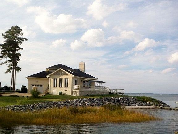 STUNNING BRICK CONTEMPORARY HOME SITUATED ON POINT LOT W/ 180 DEGREE VIEWS OF RAPPAHANNOCK RIVER AND CHESAPEAKE BAY. THIS 'SANDCASTLE' HAS A COMMANDING PRESENCE AND IS PRICED FOR TODAY'S MARKET. SPECTACULAR GREAT ROOM WITH SWEEPING WIDE VIEWS OVER THE WATER THAT OPENS TO SPACIOUS KITCHEN. WRAP AROUND DECK AND OBSERVATION DECK TO ENJOY SUNRISES AND SUNSETS. GREAT ELEVATION(14'),NO DAMAGE EVER (PER SELLER) ~ BIG SAND BEACH, AND ADJACENT BOAT RAMP.