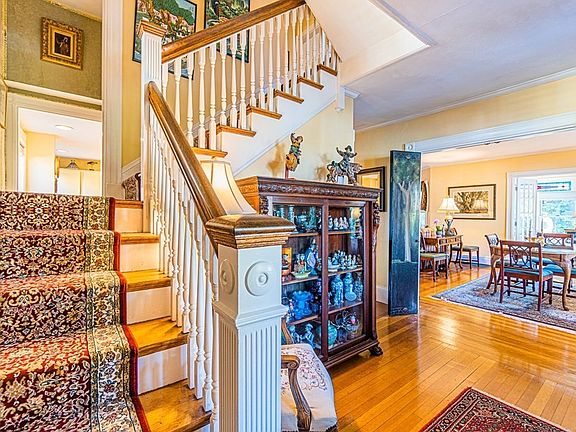 Welcome home to this quintessential Colonial near the heart of Winchester Town Center! Enjoy warm sunny afternoons on the spacious farmer's porch. Impressive foyer entry featuring a grand staircase with hardwood floors throughout. Open concept formal living and dining room is an entertainers dream! Beautiful period details, crown molding, and a gorgeous fireplace. Cozy sunroom is just adjacent and features surrounding stained glass windows. Kitchen includes granite countertops and update appliances. A showroom butler's pantry is ideal for additional storage and showcasing special items. A recently renovated half bathroom completes this level living. There are six spacious bedrooms with two full bathrooms on the second and third floor. Lower level is partially finished & heated. Exterior boosts mature landscaping with a patio surrounded by a perennial garden. Conveniently located near shopping, restaurants, local coffee shops, commuter rail and major highways! Add this to your must see!
