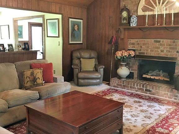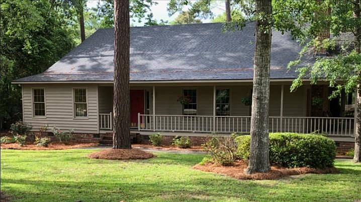Enjoy the luxury of NO HOA, while living in this sprawling ranch nestled among the pines in Academy Acres Subdivision. This 3 BR/3.5 BA home boasts an stately family room adorned with a tongue and groove cathedral ceiling, paneling, and a beautiful brick fireplace with gas logs. The family room opens to the foyer on one end and the eat in kitchen on the other. Located off the kitchen is a a separate dining room or office space with paired french doors that open onto the covered porch. Also downstairs is a formal living room/office or 4th bedroom, laundry room, half bath, and the expansive master bedroom ensuite which features a large walk in closet. Upstairs are two additional extra large bedrooms, each with their own private baths. This home is loaded with closets and storage space. The two upper bedrooms have closets that extend nearly the length of the room and could even function as a playroom! Over 600 square feet of covered porches, a storageshed and a two car carport complete this home. If you are looking for privacy and a chance to get away from tiny lots, HOAs, and crowded streets then be sure to take a look at this beautiful ranch home.