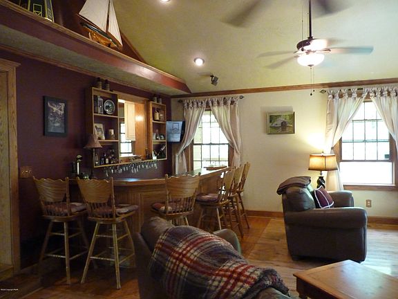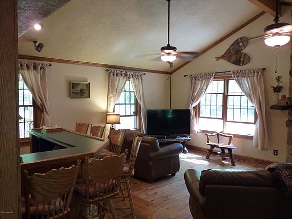 This home has it all and priced to sell! Situated on 1.4 acres. Beautiful updated kitchen with gas cooking & high end appliances,dining room,large living room with gas fireplace & bar,family room, den that can convert to 4th bedroom.full bath & laundry rm all on 1st floor. Hardwood floors on 1st floor,large deck with hot tub. 2nd floor features large master suite with jetted tub,separate shower & double sinks,2 more bedrooms & full bath. Whole house generator,central sewer ,shed and 2 car attached garage. Central air, heat pump with gas heat. This is a MUST see . Low ,low dues. Located a short hop to I 80 & PA turnpike, Close to skiing & golf & all things Pocono.