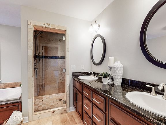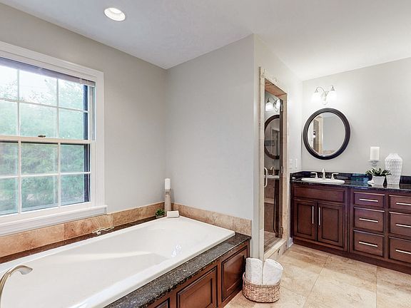 Watch beautiful lake sunsets from your back deck. Move in ready, updated ranch. New paint. Private covered boat dock + jet ski lift on a gently sloping 1.3 ac lot. All appliances including washer/dryer stay. Lovely master with gas logs on the wall between bath/bedroom. Master bath has heated floors. Terrace level has ½ bath and kitchenette (fridge and dishwasher), plenty of storage and 1 stall basement garage for a boat or other rec vehicles. Upgrades galore. Ring security system conveys
