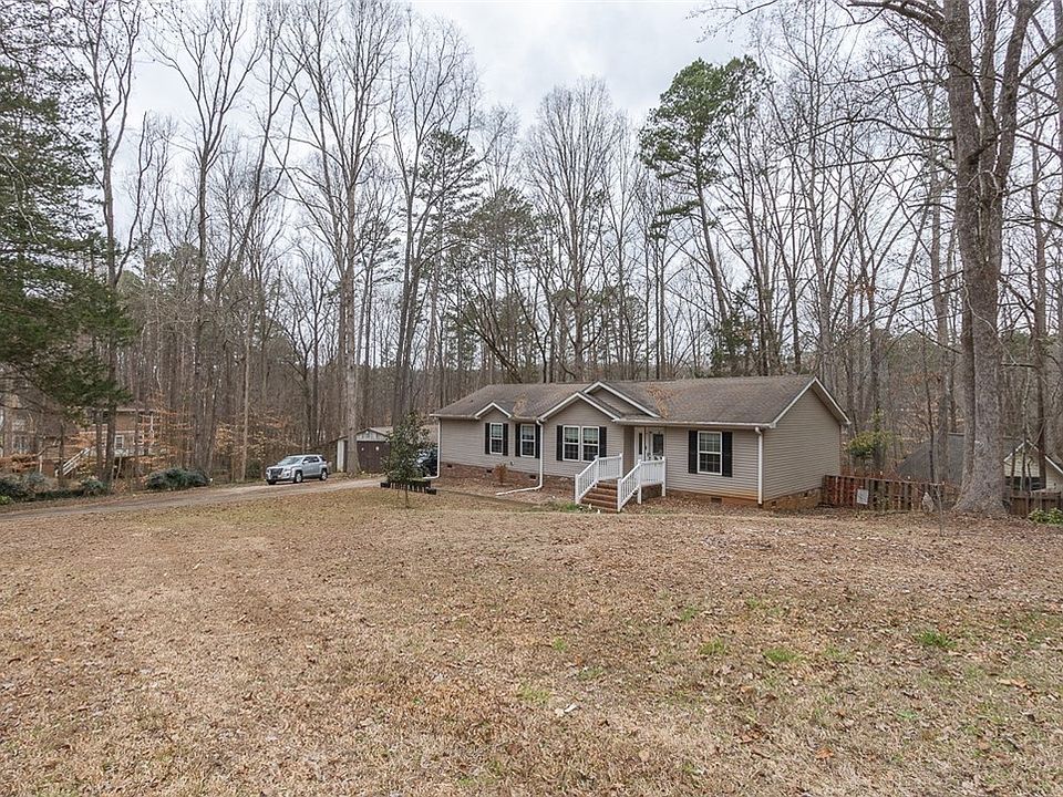 Lake Hartwell waterfront manufactured home situated on 3 lots and just under 1 acre. Wooded trail paths lead to 1 slip covered dock with wheeled gangway. ~500'+ steel and wood constructed dock platform with plenty of room for sunning and fishing. Community with low annual HOA fee provides a common area with a boat launch. Plenty of off street parking with exterior detached garage that could be modified to accommodate a vehicle. Entry into home leads to open areas of living and dining rooms with easy access to large kitchen. Kitchen is ideal for cooking with its large center bar, walk in pantry and all appliances to remain with sale. Walk in laundry room also has exterior door for side yard entry. Private split bedroom floorplan with 2 secondary and full bathroom to right of home. Owners suite is over 300' with large walk in closet and double sink bathroom w/ separate soaking tub and shower. Septic tank serviced 2022 and drain fields were also replaced. Home is easy access off I85 and close to towns of Lavonia and Toccoa's.