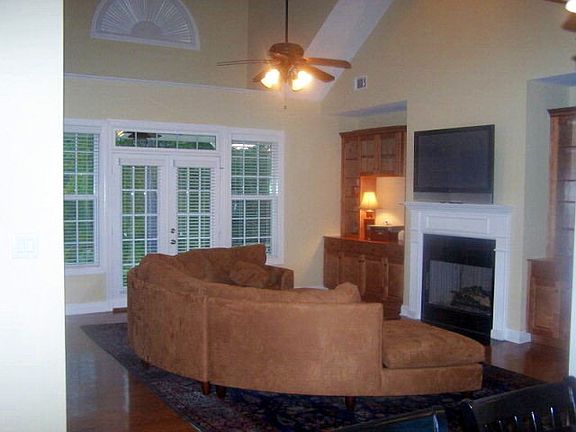 Golf course view: This home offers 3 large bedrooms, Bonus room & 2.5 baths, also there is a Huge Great room with a gas log fireplace & built in book shelves all open to the formal dining room. The kitchen offers Tons of cabinets and solid surface counter tops. The Master Bedroom features a Trey ceiling and Crown moldings, Master bath features dbl sinks, Jetted tub & separate shower. Other features include hardwood & Tile Flooring, tons of molding & upgraded fixtures