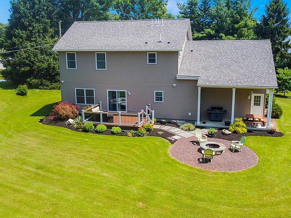 This 3 bedroom 2 ½ bath colonial on a private 1 acre lot was custom built for this family. Walk into the foyer with hardwood floors throughout the first floor, continuing to the large living room and Family room/ Dining room with a stone fireplace, a formal dining room( used as a playroom today) and spacious kitchen. Head upstairs to the master bedroom suite and 2 additional bedrooms and hall bath. The oversized 2 car garage offers plenty of extra storage and a separate outside entrance to the full basement. The backyard is one of the best. The large deck, fire pit and the privacy it offers is great to entertain or sit back and enjoy your own private oasis. A shed to keep extra tools or mowers. Just a 2-minute walk to the beautiful Penn Township Park featuring walking trails, a fire pit, sand volley ball court, horseshoe pits, adult fitness park, butterfly garden and a putting green. No HOA to pay or HOA restrictions.
