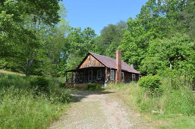 Authentic mountain cabin with 9.41+/- UNRESTRICTED acres located in Clarks Chapel. Solid original barn, state paved road, some pasture, close to town, spring water and good building sites. House could be lived in while you built.