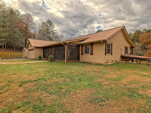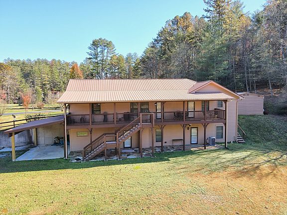Nestled in the NE GA mountains on 6 private acres, this incredible approximately 3700 sq ft mountain, river front retreat is minutes from Lake Rabun. The four seasons FRONT PORCH has removable panels and is perfect for welcoming family and friends to sit and enjoy the beauty and privacy it provides. The covered back porch stretched the entire length of the house and looks out over the stocked creek that is perfect for fishing and kayaking. MAIN LEVEL FEATURES: - Maple Hardwood Floors throughout - Spacious Foyer opens into the Formal Dining Room and flows into a Vaulted Family Room and custom Kitchen which provides an open floor plan. The Full Kitchen features custom maple cabinetry, granite countertops with eating bar, double door pantry as well as a walk in pantry, and updated stainless steel appliances. The laundry room is off the kitchen and features cabinetry and a utility sink. Main level also includes two bedrooms (one which could be a second master) with a full private bathroom in each. TERRACE LEVEL: - includes a hydraulic elevator to the Massive Master Bedroom Suite with built in gas fireplace and sitting area and Bath w/ a jetted tub, walk in shower, double vanities with quartz countertops and water closet. There are two oversized walk in closets (One is 25a X 11a with stackable washer and dryer). The master bedroom has a door out to a rock patio perfect for relaxing and enjoying the tranquil sounds of the nearby creek. An additional bedroom/office and half bath is on the terrace level with private entrance as well. ADDITIONAL FEATURES INCLUDE: - 225 foot well approximately 60 gallons/minute, whole house water filter, gas tankless water heater on demand, duel fuel furnace/AC heat pump updated in 2020, whole house generator and EMP shield protection, 2 gas tanks a 1000 gallons and 500 gallons, 2 car attached garaged and 1 car oversized detached garage, car port for boat storage on terrace level with covered rock patio, and full RV hookup. There is also a whole house security system installed and a fenced in 100a x 40a garden area on the property as well. This house has hardie board siding and a metal roof. The property has been set up to be totally self-sustainable.