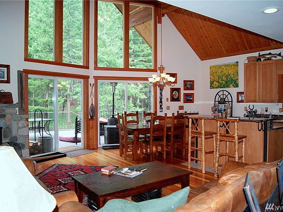 'Lost Goat Ranch' has a stunning view landscape.Classic 2,471 S.F. 'chalet' style home with 4 Bedroom,3 Bath.Master has en suite.Authentic Stone fireplace.Wood stove.Solid knotty alder doors.Kitchen tile floor,wood cabinets,granite counter-tops.Solid-wood floors. Trane Heat pump/AC system.Guest suite has full bath & wet bar.Hot tub spa.Concrete stamped walkways & patio.Dynamic homesite. Storage outbuilding.Attached Garage,shop & carport.120 mile Ski-Trail close by.Freshly painted interior!