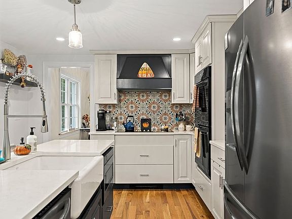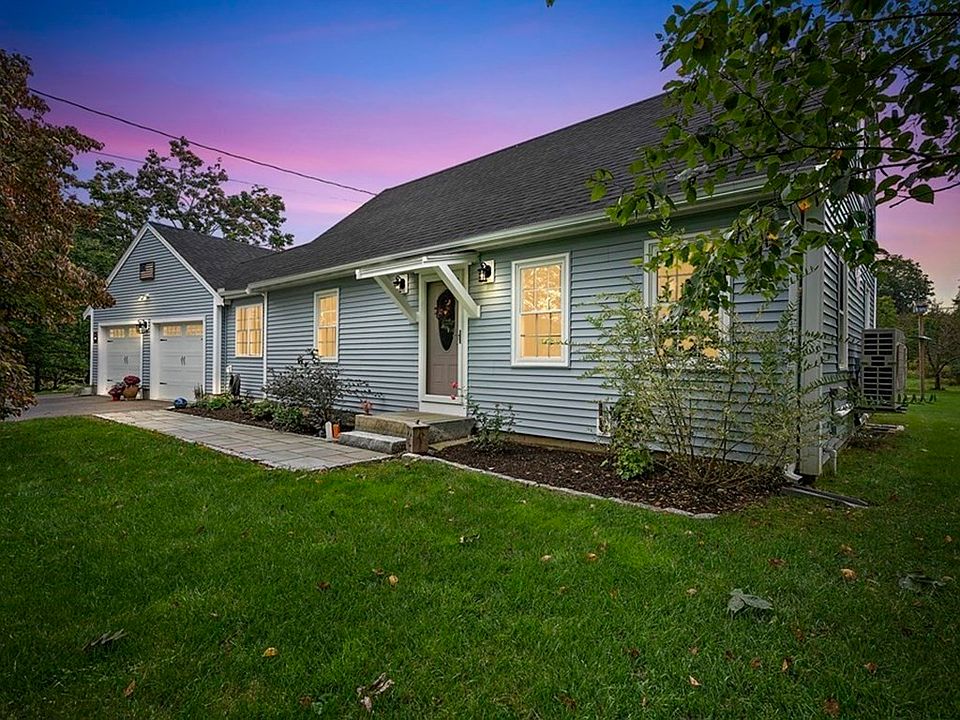 This sweet, pristine and adorable Cape home offers a peaceful country setting with modern amenities. Renovated 3 years ago, it's move-in ready! Enjoy a gourmet kitchen with an island, quartz counters, trendy backsplash and stylish cabinets. A mudroom with laundry connects the 2-car garage to the kitchen. The 1st floor includes an office, a spacious dining room with plenty of space to host Thanksgiving dinner and a living room opening to a 3-season porch with backyard views. Upstairs, find 2 large bedrooms, including a primary suite, and another full bathroom. Gleaming hardwood floors throughout, plus 3 mini-split ACs for summer comfort. Other updates include a 3-yr-old roof, vinyl siding, new windows and water filtration system. The property spans 2 acres, providing lots of space for outdoor fun and relaxation! Located in South Hampton, NH with a top-notch school system (SUA21) and just minutes to downtowns Newburyport, Amesbury, Exeter, and commuting routes 95 and 495.