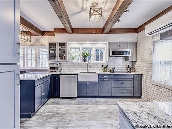 Absolutely charming brick Tudor centrally located in Kingston and across from a private estate with park-like acres. All of the details of the era are intact, including gorgeous hardwood floors, built-ins, beamed ceilings, and fabulous masonry details just to name a few. The high ceilings and copious windows make the large living spaces bright and airy and in the cooler months you’ll be warm and cozy in front of the fireplace. The enclosed sunroom/family room enjoys walls of windows with skylights that offers additional living space and overlooks a lovely and private back yard with beautiful landscaping and stone patio. The custom kitchen has great flow, with an eat in area and plenty of storage with real brick accent walls including all new SS appliances. There are three bedrooms, well done full bath on the second floor and one half bath on the first floor. The master bedroom offers a large walk in closet. Ideally Located in Roosevelt Park, you’re only minutes from Uptown Kingston’s Stockade historic district with its fab restaurants, Farmer’s Market and many shops, mid-town with its growing art scene and theater or the downtown Rondout area known for its marina, boating, boutique’s and eateries to satisfy any palette. There is always somewhere to go, explore, or enjoy! Surrounding areas will lead to walking trails, biking, hiking, skiing and beautiful mountain views! NYS Thruway is only a five minute drive for an easy commute!