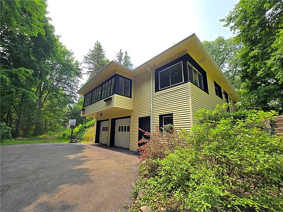 This gorgeous property presents a beautifully updated ranch-style home situated on just over 5 wooded acres with a peaceful pond, offering privacy and a serene natural setting. This 2-bedroom, 1-bathroom home features 1,492 square feet of living space, with every room recently remodeled to include modern finishes and thoughtful design throughout. A 4-car garage located beneath the home provides ample space for vehicles, storage, or workshop needs. Major mechanicals - including the furnace, central A/C, and hot water tank - were all replaced within the past 2 years. The full basement includes additional storage space along with a built-in storm shelter, offering extra security and utility. This property blends rural charm with convenient access to nearby amenities and major roadways, making it a distinctive and versatile opportunity. All offers due by 5pm on June 10th.