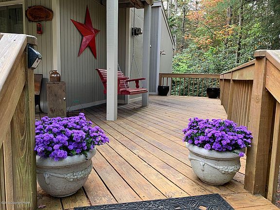 Beautiful, Bright 3BR, 2BA Contemporary in Lake Naomi nestled on a private lot surrounded by tall pines and wild rhododendron. Ideally located across from the lake and steps away from the Olympic-sized pool. Features living room with vaulted ceiling, wood burning fireplace and balcony deck. Separate family room with slider to large two-level deck overlooking the backyard. Mostly hardwood & tile floors thru-out, wrap-around deck on first level, efficient 2-zone hot water baseboard oil heat, water filtration system, outside storage shed and community sewer. Centrally located near ski areas, Kalahari, Mt Airy, Outlet shopping, Historic Jim Thorpe, State Parks and Pocono Raceway. Easy access off the northeast extension of the PA Turnpike or I-80 and within 2 hrs of NY, NJ and Philly.
