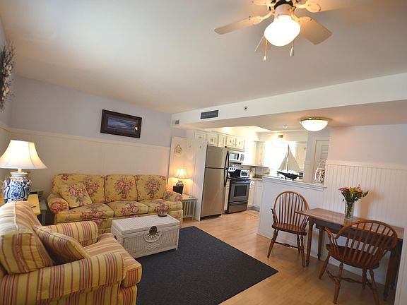 Two bedroom, 1.5 bath condominium offering 700 sf of living space, located just a mile from beautiful Goose Rocks Beach. Offers laminate, tile and linoleum flooring, granite counter-tops, beadboard accents, central air conditioning, washer/dryer in unit and dishwasher. This recently renovated resort offers indoor/outdoor pools, kiddie pools, playset, volleyball, basketball court, tennis court, fitness center and much more! There is something for everyone at this fabulous resort, rain or shine.