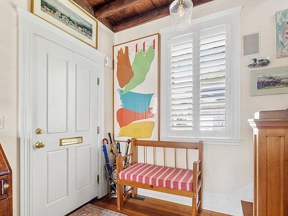 This home is a work of art. Local Craftsmen have masterfully renovated an old horse barn from the 1880s; It is Perfect as a cozy home or a great condo alternative. It's a pleasure to see how one would live in the space complimented by high ceilings and exposed beams with a rustic feel. The gas fireplace adds to the charm. New kitchen appliances and butcher-block counters complement the wood floors and beamed ceilings. A screened-in porch creates great space and allows the landscaped yard to be viewed. A newer bath was added, and tons of nooks and crannies. The second floor has a charming Primary and another beautifully renovated bath. A cozy space for watching TV or reading. The lower level has been beautifully completed with extra closets, laundry, and space for your home office. This home lives very nicely and efficiently and is warm and welcoming. The patio and landscaping invite you to sit and enjoy. Quick stroll to downtown Hingham and the Commuter Rail. Feels like Beacon Hill