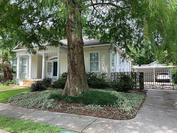 This historic midtown home in the Leinkauf Historic District offers 4+ bedrooms and 3 baths in a 2800 sqft floorplan with approx. 2200 sqft on the main level. Off the center hall you'll find rooms boasting pocket doors, three non-functional fireplaces, and wide plank wood flooring. First floor owner's bedroom with en-suite bath, up to 2 additional bedrooms, a 2nd bath, the generous living and dining rooms, & a laundry allow for the possibility of entirely single level living. The 2nd fl, with separate HVAC, consists of 2 bedrooms, a bath, and a den--if your needs expand beyond the space offered on the 1st fl. Outside there's a covered patio overlooking the backyard. The drive with automatic gate leads to a 2 space carport & accessory building offering a studio workroom, workshop, & storage room. Agents with qualified buyers welcome.